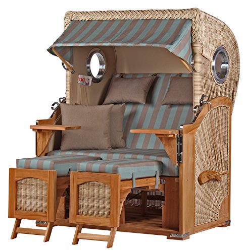 TEAK Strandkorb Volllieger für den Garten, Terrasse, Campingplatz, Dachterrasse, Balkon oder Wintergarten, VOLLLIEGER: Neigung des Strandkorb Oberkorbes ist verstellbar bis hin zur Liegeposition, MATERIALIEN: UV- und witterungsbeständiges Polyrattan Geflecht | Markisenstoff aus 100% Polyester |…